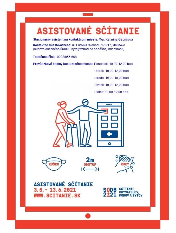 Skontrolovať váš stav sčítania môžete cez stacionárneho asistenta na kontaktnom mieste Ludvíka Svobodu 17 (bývalý vchod do sobášnej miestnosti) alebo pomocou mobilného asistenta, o ktorého môžete požiadať na telefónnom čísle obecného úradu: 0903855668.