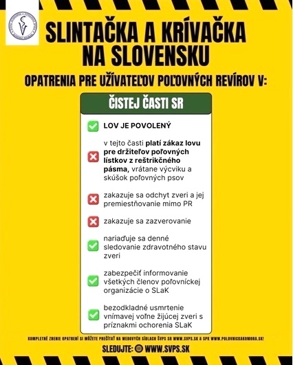 Vážení občania, dávame vám do pozornosti obsah Mimoriadneho núdzového opatrenia č. MNO 2760/2025 zo dňa 26. marca 2025, ktoré vydal hlavný veterinárny lekár SR. Toto opatrenie sa týka predovšetkým užívateľov poľovného revíru a organizátorov spoločenských poľovníckych akcií.