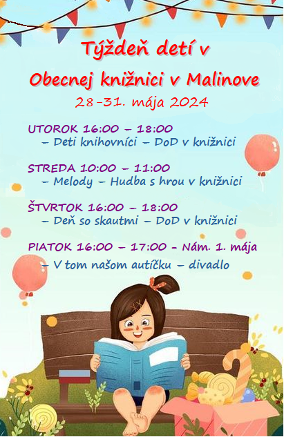 Obecná knižnica v Malinove Vás pozýva na Týždeň detí v knižnici
