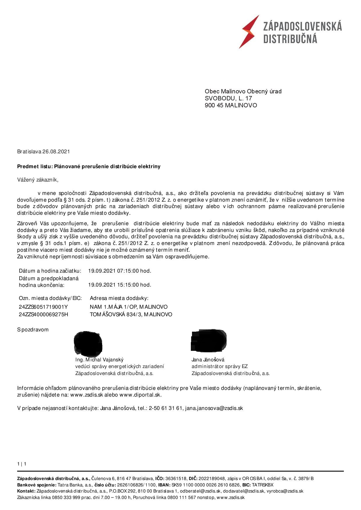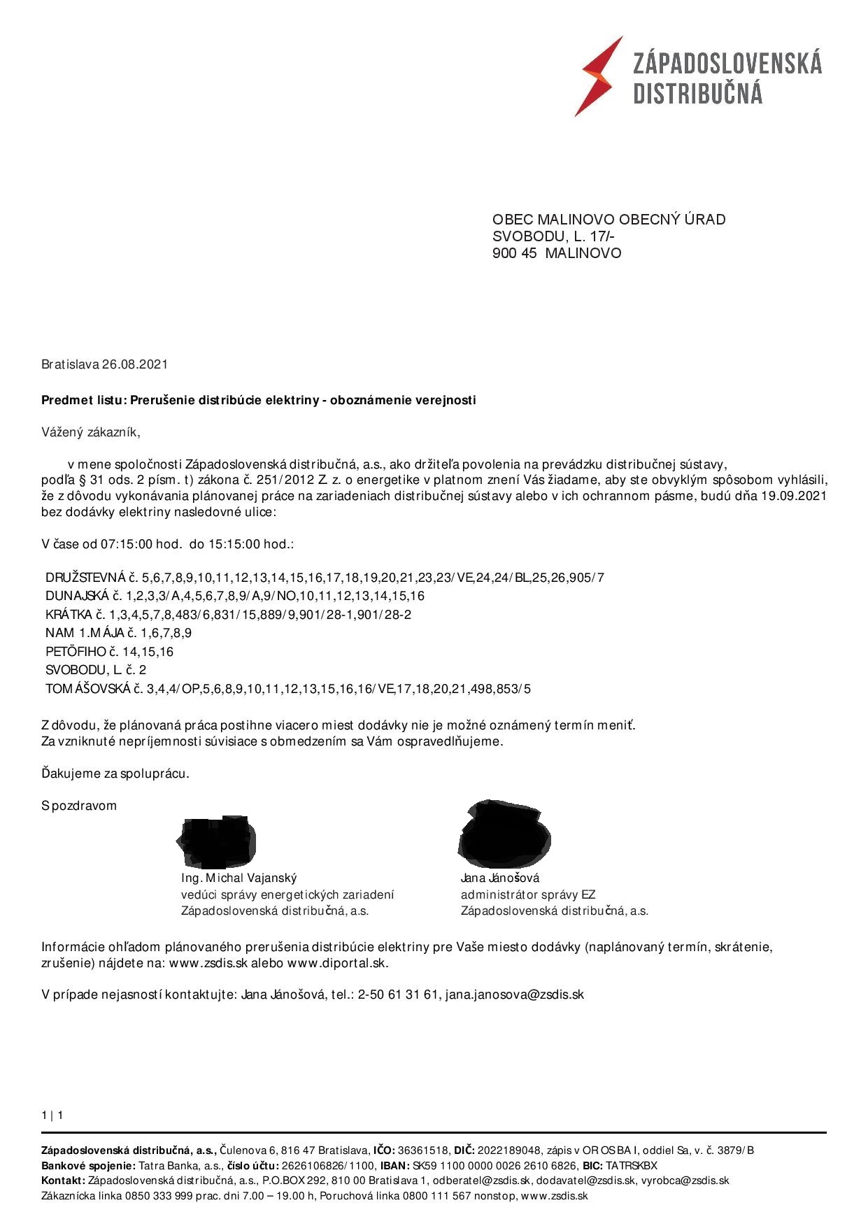 PRERUŠENIE DISTRIBÚCIE ELEKTRINY