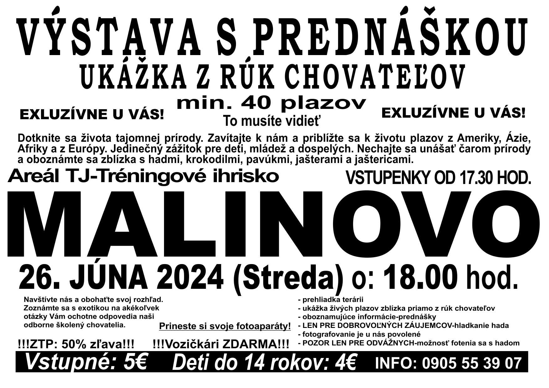 Pozývame vás na originálnu výstavu “Jaštery a hady”, ktorá sa uskutoční dňa 26. júna (stredu) o 18:00 v areáli TJ Malinovo - na tréningovom ihrisku.