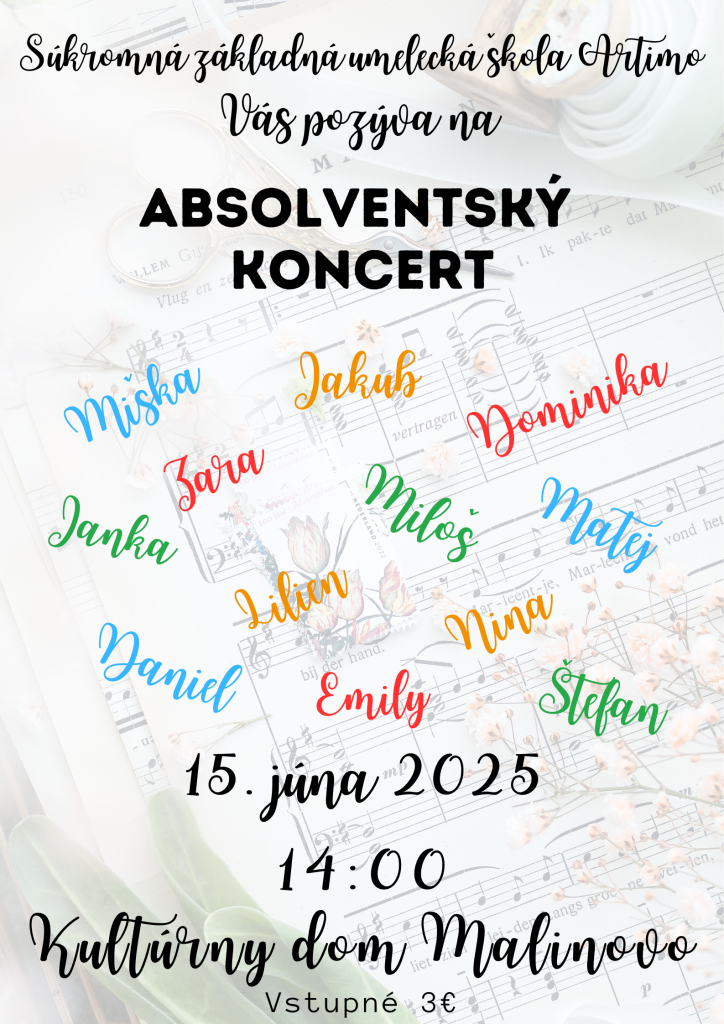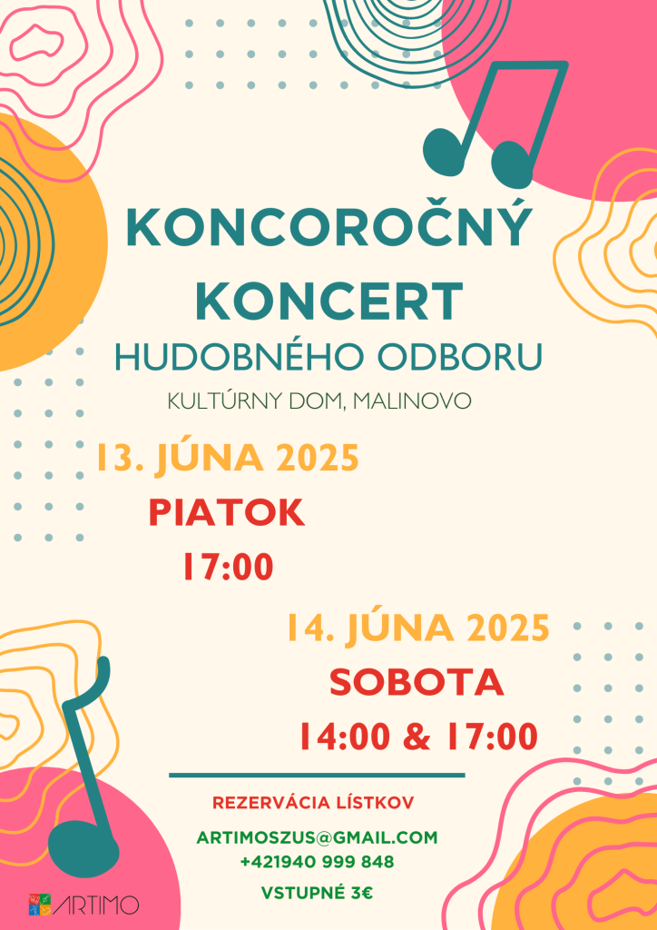 Súkromná základná umelecká škola Artimo v Malinove Vás pozýva na záverečné vystúpenia žiakov:
