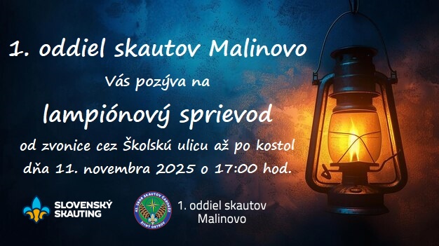 1. oddiel skautov Malinovo vás pozýva na lampiónový sprievod, ktorý sa uskutoční dňa 11. novembra 2025 o 17:00 hod. pri zvonici.