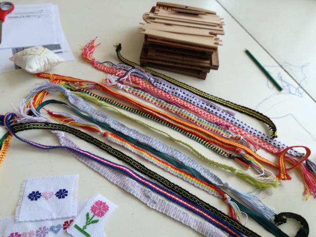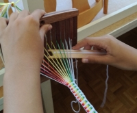 Ešte vzrušujúcejšie boli tkanice. Osnova z bavlny rôznych farieb umožnila vyrábať naozaj krásne vzory a komu to nevyšlo hneď, neváhal vypárať a spraviť to znovu. Dievčatá si tkanice vyskúšali ako náramky, náhrdelníky, najkrajšie však budú ako ozdoba na kroj.