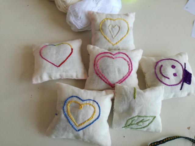 Najmenšie deti prekvapili svojím odhodlaním a vytrvalosťou. Základné stehy s tupou ihlou skúšali najskôr na paname a potom "naostro" pri výrobe ihelníčka pre mamy. Nedali si pomáhať, samé svoje dielka dokončili. Mali síce pre prípad únavy rozložené v kúte aj karimatky, ale využívali ich minimálne.