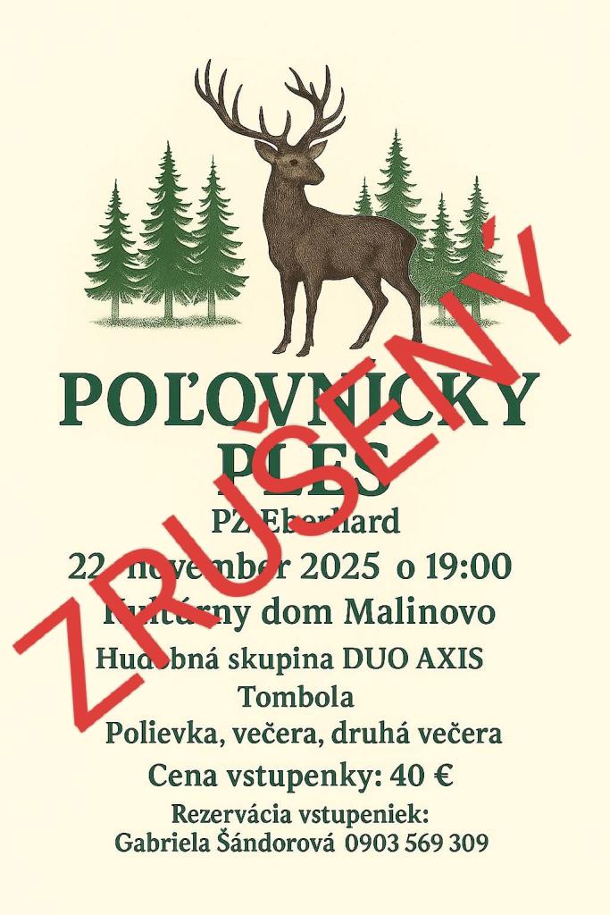 Vážení občania, z organizačných dôvodov sa plánovaný Poľovnícky ples ruší.